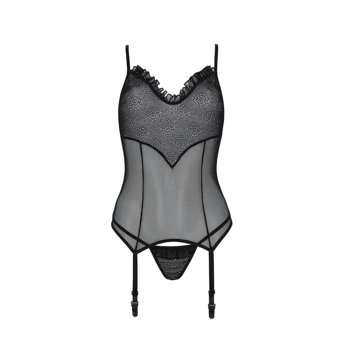 - sinnliche strapscorsage gefertigt van einem mix van weichem, durchscheinendem tüll en zarter spitze