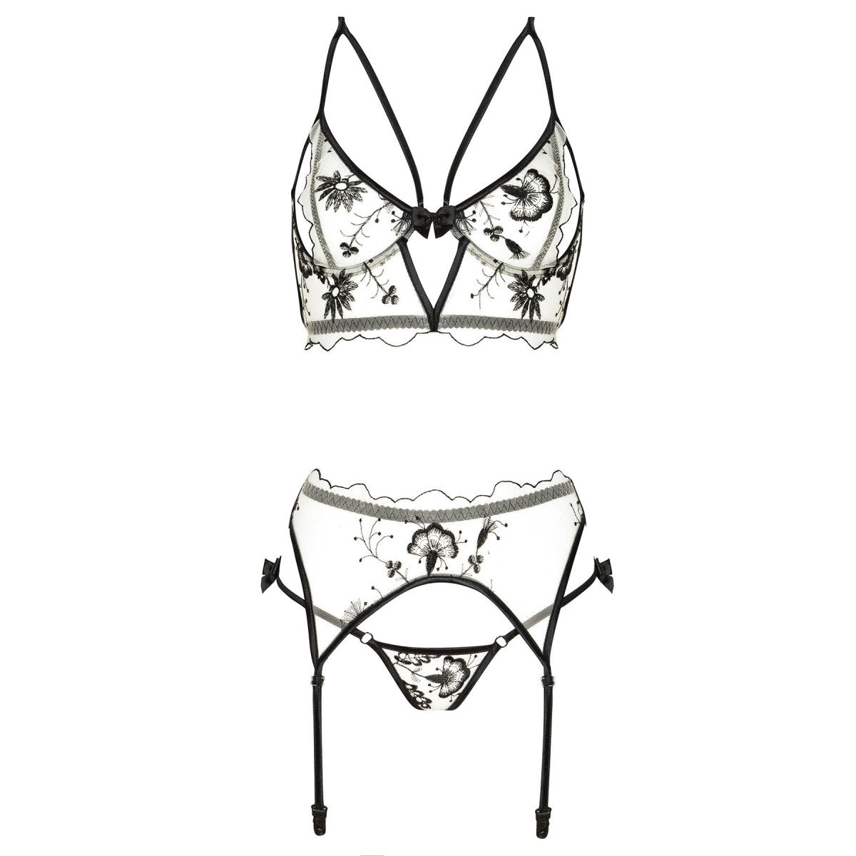 - verführerisches 3-teiliges set van beigem, durchscheinendem tüll sowie met zarter draufgenähter
