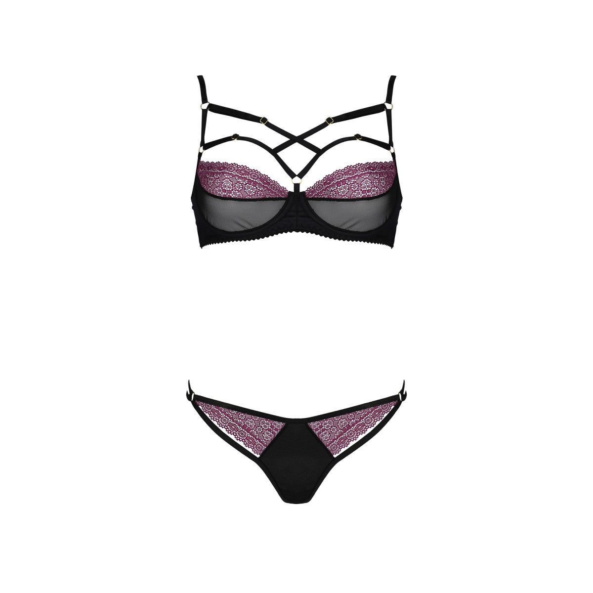 - die verstellbaren gummibänder, die die brust umgeben, sowie die spitzenverzierungen auf den cups verleihen dem set das gewisse etwas