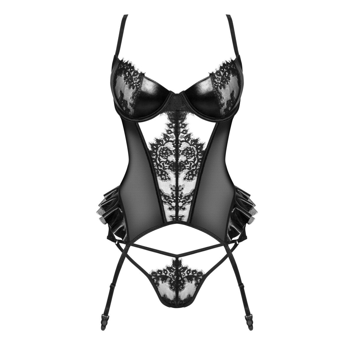 - hergestellt van einer luxuriösen mischung von spitze, tüll en wetlook-material, die eleganz en sinnlichkeit perfekt vereint