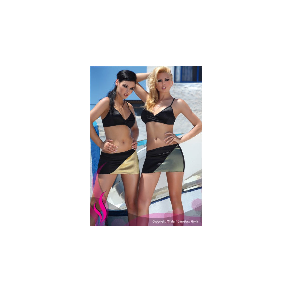 - Bestehend aus einem BH(elastische Träger), Minirock und String